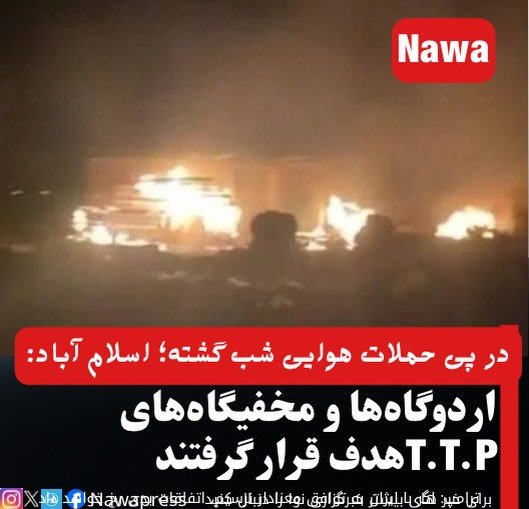خبرگزاری نوا: تلویزیون ملی تحت کنترل طالبان گزارش داده است که در پی حمله هوایی شب گذشته پاکستان در ولسوالی