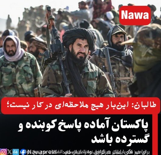 خبرگزاری نوا: سخنگوی طالبان با لحنی تند و بیسابقه هشدار داد که در برابر اقدامات اخیر پاکستان، اینبار هیچگونه ملاحظهای